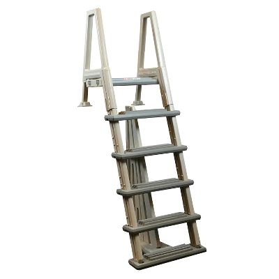 Confer 6000X Series Inpool ladder is a deluxe heavy duty in pool lader. The ladder features a an anti-entrapment barrier, has a flat treads for easier climbing and totally adjustable for deck heights from 48-54″. The Confer 6000X includes a deck platform, has white side rails with grey treads for high visibility. The Confer ladder made of strong, solid construction for years of use!