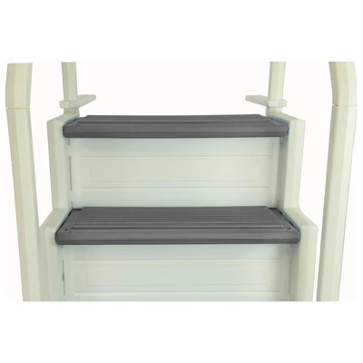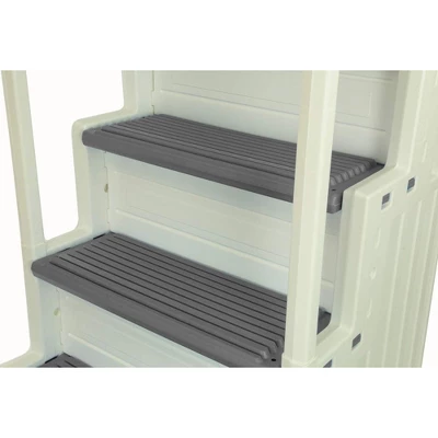 Easily climb in and out of your above-ground pool with the Confer STEP-1 4-Step Pool Entry Stairs. These pool steps help you ease your way into your pool and are super simple to install.This pool staircase is made for above-ground pools with flat bottoms and requires 40 pounds of sand for proper use. Do not combine with external weights. The whole unit snaps together for simple assembly. You’ll also get the mounting brackets needed to secure these pool steps to your pool or deck. The pool steps can support up to 400 pounds.Attractive and functional, these pool stairs feature 4 steps and 2 sloped handrails. Each pool step is large and flat with 270 square inches of foot space. Each step measures 10 inches deep, 27 inches wide, and 11 inches high. Overall, the above-ground pool stair system measures 32 inches deep, 31 inches wide, and 47 inches to the top step or 85 inches to the top of the handrail.Getting in and out of your swimming pool has never been easier than with the Confer Step-1 Above Ground Swimming Pool Ladder Heavy Duty Step System Entry.