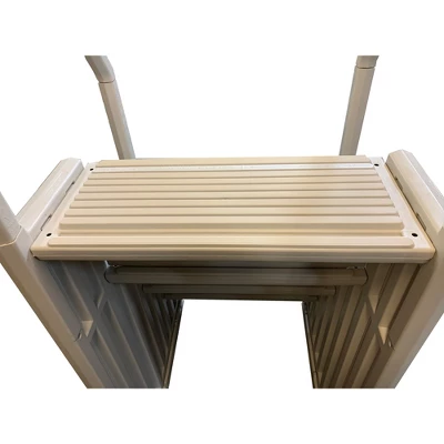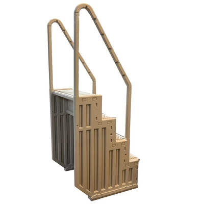 Find the gateway to relaxation and fun as you easily climb in and out of your flat-bottomed above-ground swimming pool with the Confer Stair Ladder Entry System with 4 Steps and 2 Handrails for Flat Bottom Above Ground Swimming Pool. These pool steps help you ease your way into your pool and are super simple to install.This pool staircase is made for above-ground pools with flat bottoms and requires 40 pounds of sand for proper use. Do not combine with external weights. The whole unit snaps together for simple assembly. You’ll also get the mounting brackets needed to secure these pool steps to your pool or deck. The pool steps can support up to 400 pounds.Attractive and functional, these pool stairs feature 4 steps and 2 sloped handrails. Each pool step is large and flat with 270 square inches of foot space. Each step measures 10 inches deep, 27 inches wide, and 11 inches high. Overall, the above-ground pool stair system measures 32 inches deep, 31 inches wide, and 47 inches to the top step or 85 inches to the top of the handrail.So, whether you’re taking a dip, lounging, or playing with family and friends, make your pool time safer and more enjoyable. Dive in and experience the ultimate in poolside luxury and convenience. Getting in and out of your swimming pool has never been easier than with the Step-1 Above Ground Swimming Pool Ladder Heavy Duty Step System Entry from Confer.