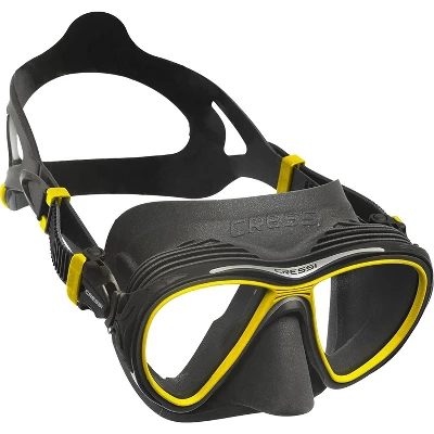 - Features inclined and inverted tear-drop lenses for improving downward visibility, a Cressi patented design (US 6272693).