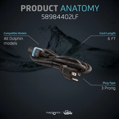 Cord, Maytronics Dolphin Cleaners, for Digital Power Supply. 100% Brand New – Unused PartsPart number: 5898412LFPower Cord for Maytronics Dolphin Cleaners Digital Power SupplyFits the Following Power Supply Cleaners: Dolphin Nautilus Plus Dolphin Nautilus Dolphin Triton Plus Dolphin M200 Dolphin M400 Dolphin Discovery Dolphin Saturn Dolphin EdgeAlso fit: Dolphin Supreme M3 Dolphin Supreme M4 Dolphin Supreme M5 Pentair Prowler 820 Pentair Prowler 830 Dolphin Dx3 Dolphin Dx4 Dolphin ApolloProduct DetailsPart number: 5898412LF.