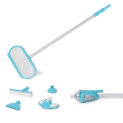 Would you look at that, it’s time to take a swim and make a splash in this Intex 18-foot x 48-inch Inflatable Easy Set Swimming Pool.This pool will make your backyard the place to be all summer, as your family can relax and play. Get everything you need in 1 package. This set is constructed of 3-ply material that resists punctures and includes a 1,500 GPH filter pump, ladder, ground cloth, and debris cover. Easy Set pools are easy peasy to set up and disassemble faster than a framed pool. Bring the beach to your backyard with this above-ground Intex Inflatable Easy Set Swimming Pool.Including several great tools, the Intex Deluxe Maintenance Kit keeps your pool water looking crystal clear. Maintenance is a part of every swimming pool, and getting the right tools for the job cuts down on time spent cleaning. Using your existing filter pump, the included vacuum sucks debris from the pool floor. The deluxe skimmer collects floating debris, while the leaf rake is great for skimming anything that is missed. A clean pool is a safe pool!