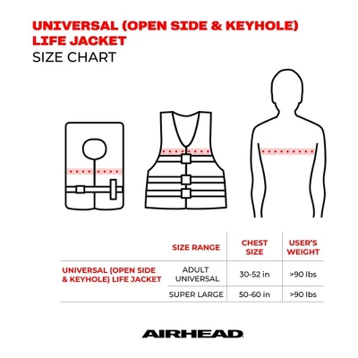 Stay safe while you test out your new jet ski or take on a parasailing adventure with the Kwik Tek Airhead Bolt Type III Family Adult Life Vest Jacket.This US Coast Guard approved, Type III life jacket is a must-have for a variety of water activities. From kayaking to jetskiing to swimming, enjoy the open water with this stylish life jacket. Designed to move with you, this form-fitting life jacket is made of lightweight PE foam with a durable, woven-polymer shell. This life vest also features a large front closure with 4 adjustable sizing belts with quick-release buckles, letting you get into and out of the vest quickly. The soft foam and shell are less likely to cause skin irritation and the oversized arm holes provide plenty of mobility for swimming and water sports.Provide yourself with extra protection when out on the water with the Kwik Tek Airhead Bolt Type III Family Adult Life Vest Jacket.