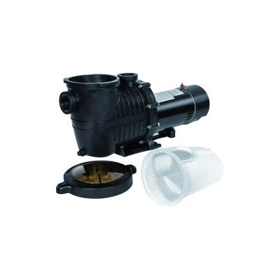 Designed for today’s demanding installations. This high-performance 1 HP medium head pump has been engineered for durability and quiet performance with the economy in mind. Setting the standard for value, performance and excellence, this all-around, self-priming pump with large pump basket is ideally suited for all above-ground, on-ground and small in-ground pools. It comes with a high-efficiency motor, 100% recyclable environmentally friendly plastics, and carbon to ceramic sealing surfaces design that will make this the leading pump choice of all pool professionals. Provides excellent water flow to keep your pool water crystal clear!Product features:Rugged one-piece strainer housing molded of corrosion-proof reinforced thermoplastic for extra durability and long lifeHigh performance motor design for quieter, cooler and more energy-efficient operationSpecially constructed clear lid with locking ring design is easy to openLarge strainer basket is always locked in placeAmerican design mechanical seal using carbon to ceramic sealing surfacesStainless steel shaftHigh profile motor mounting baseSimple servicingSelf-primingSingle speed 1 horsepower motor115/230 volts, 60 hertz1.5″ suction and discharge portsDesigned and manufactured to meet all CSA and ETL requirements