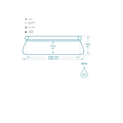 Stay cool this summer with our 12 foot inflatable easy set swimming pool. Good times are here with this spacious, fun, inflatable pool that is big enough for the whole family to enjoy. The comfortable blue and white wide sidewalls allow for ultimate lounging to make your summer experience unforgettable. This will become a quick, backyard favorite all summer long.Product Features: Inflatable top ring swimming poolColor: blue and whitePuncture resistant linerExtra strong Tri-Tech sidewalls made with 3 layers of PVC and mesh create a durable material ensuring higher resistance and stabilitySelf-supporting inflatable top ringEasy to set up, only takes 10 minutes of assemblySimply inflate the upper ring and the pool will rise as it’s filled with waterFeatures a built-in drain valveCompact storage easy deflationIncludes pool filter pumpThe filter pump will keep your pool clean from debris by having a flow rate of 330 gallons per hourAir release valve for air trapped inside filter chamberFor outdoor use onlySuitable for ages 6 and upCover and ladder are not includedDimensions: 30″ high x 12′ diameterMaterial(s): PVC